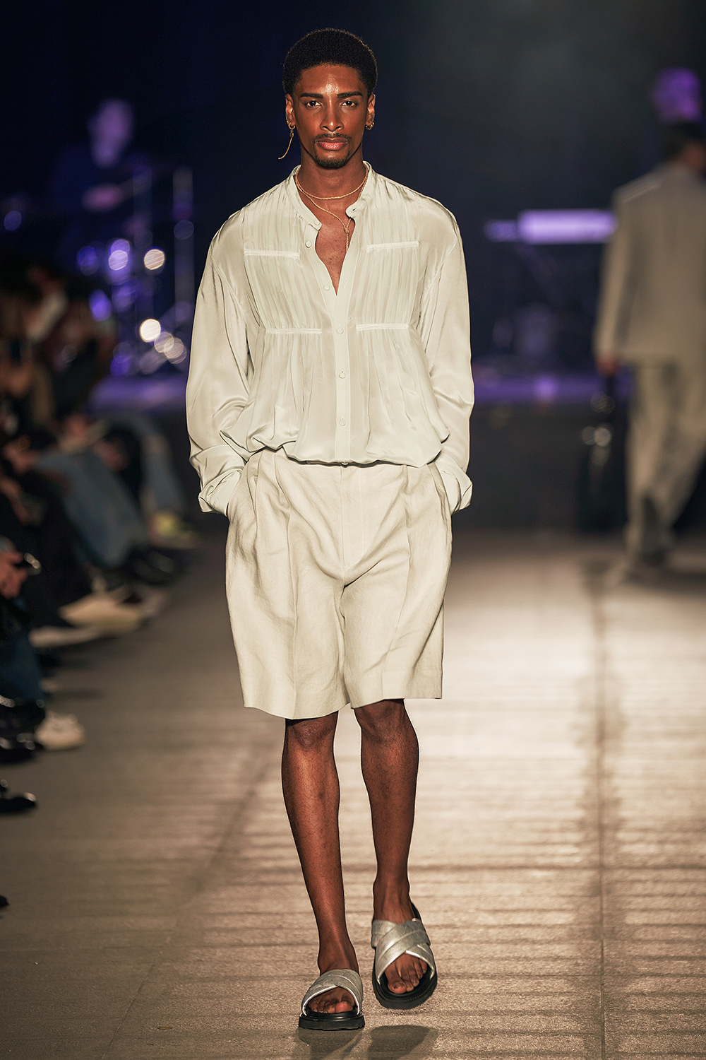 Grey-Blue Pleated Silk Shirt